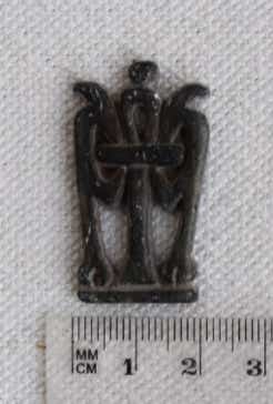 Das Original wurde in Ballas – Grab 207 gefunden, befindet sich im Petrie Museum und datiert in die Naqada-II-Zeit (ca. 3.500-3.200 BC). Die Replik ist in Originalgrösse (5,3 x 2,9 cm) aus ägyptischem Kalkstein gearbeitet. Das Fundstück erinnert an Paletten mit Vogelköpfen.