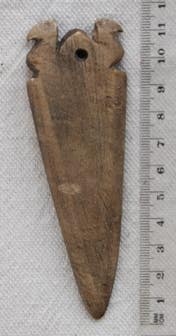 Die Form dieser Palette, deren Original in die Naqada I – II-Zeit (ca. 3.900-3650 BC) datiert – erinnert an einen kleinen, leichten Schild oder an ein Boot. Die Enden erinnern an Vogelköpfe, möglicherweise stellen sie einen Falken dar? Gefunden wurde das Original im Friedhof 7000 – Grab 7008 in Naqada, eine Nutzung als Pektoral kann nicht ausgeschlossen werden.